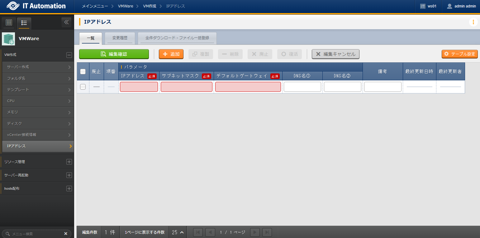 vCenter内に作成されるIPアドレスを入力するためのメニュー項目です。