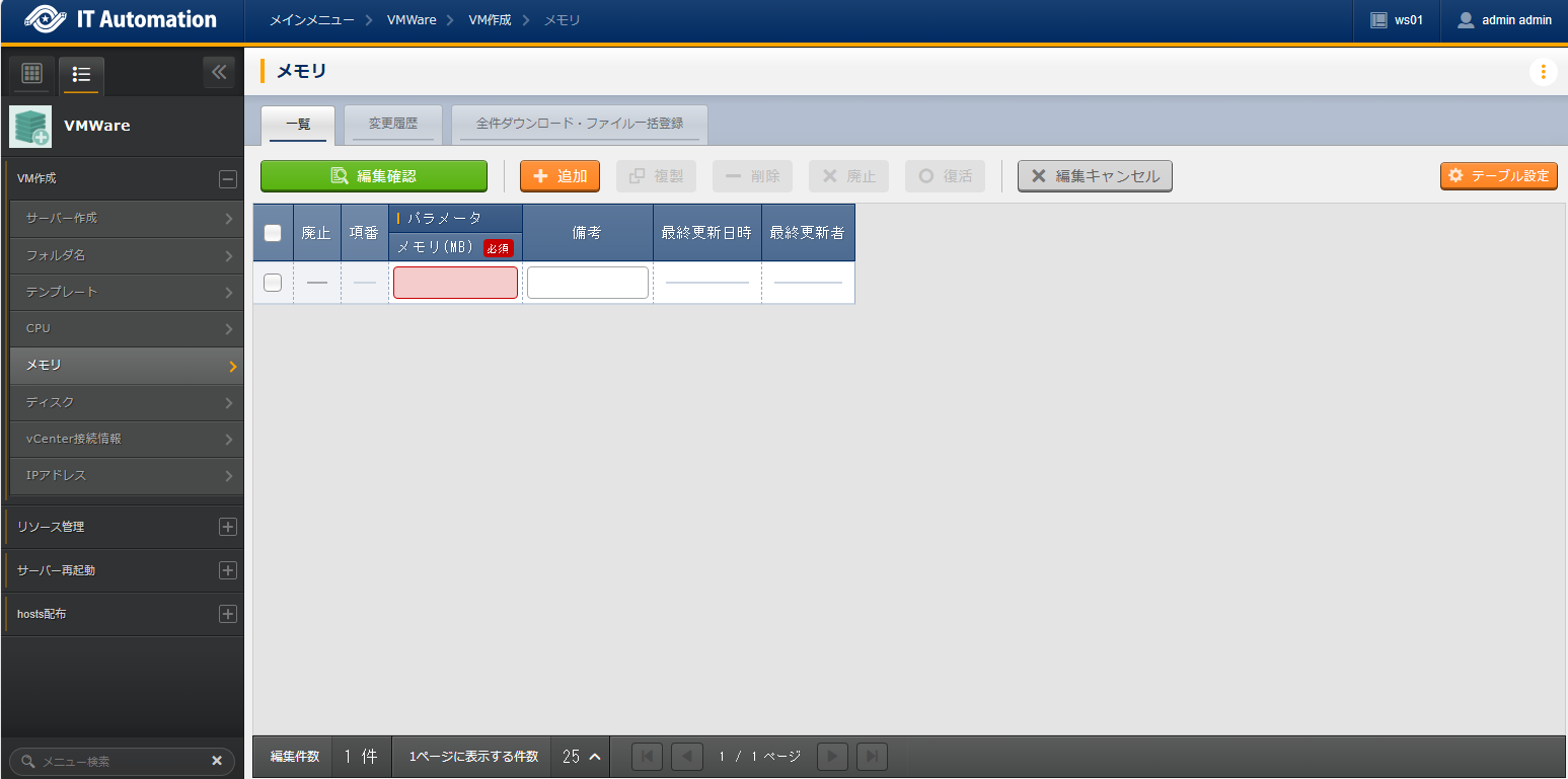vCenter内に作成されるVMのメモリ容量を入力するためのメニュー項目です。