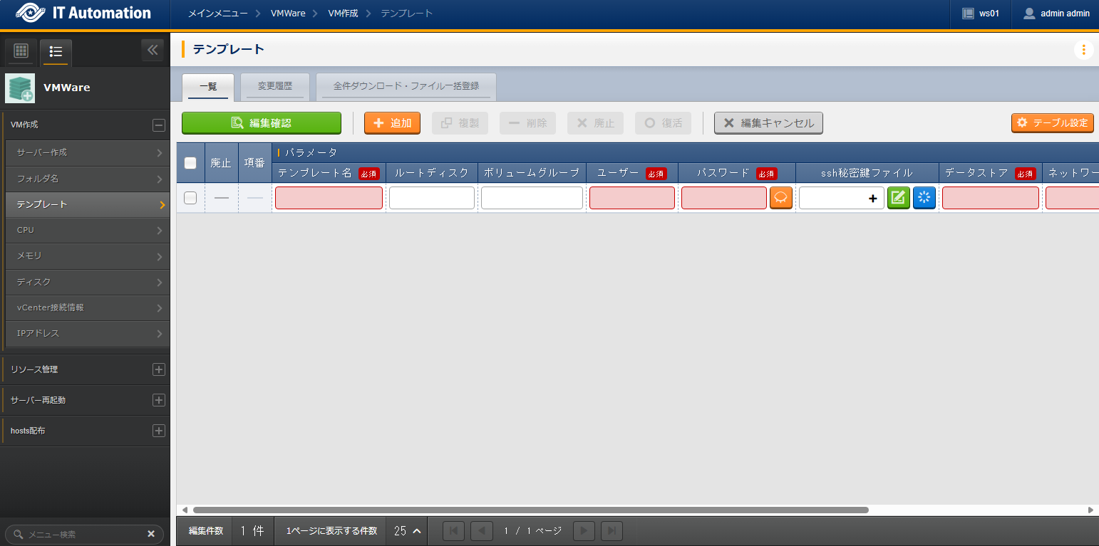vCenter内に作成されるテンプレートを入力するためのメニュー項目です。