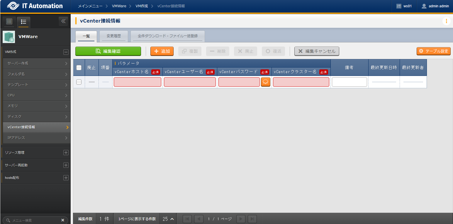 vCenterに接続する情報を入力するためのメニュー項目です。